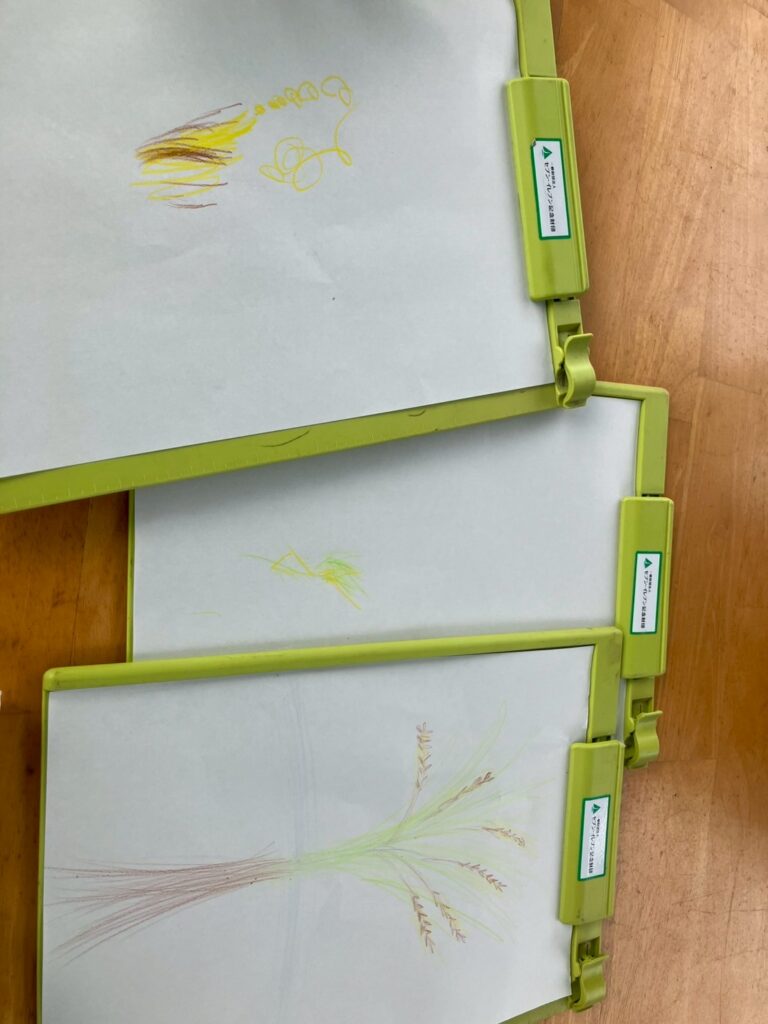 早速、稲の絵を描きながら観察をして、背比べをしてみましたよ✨ちょうどおんなじくらいかも😊