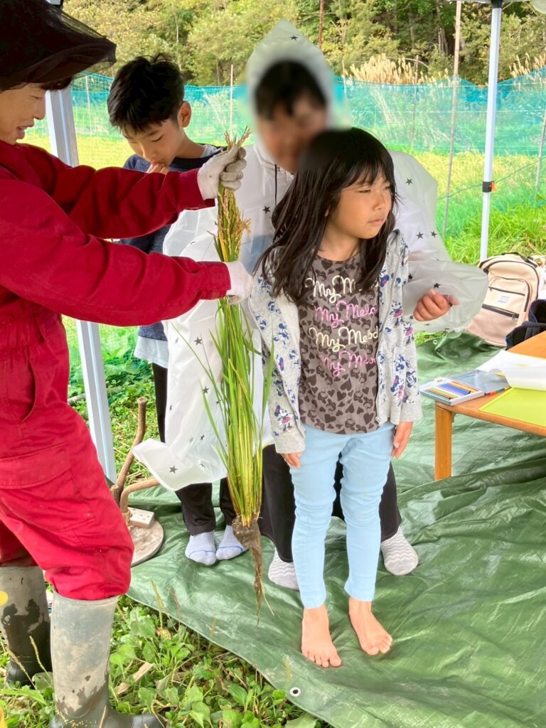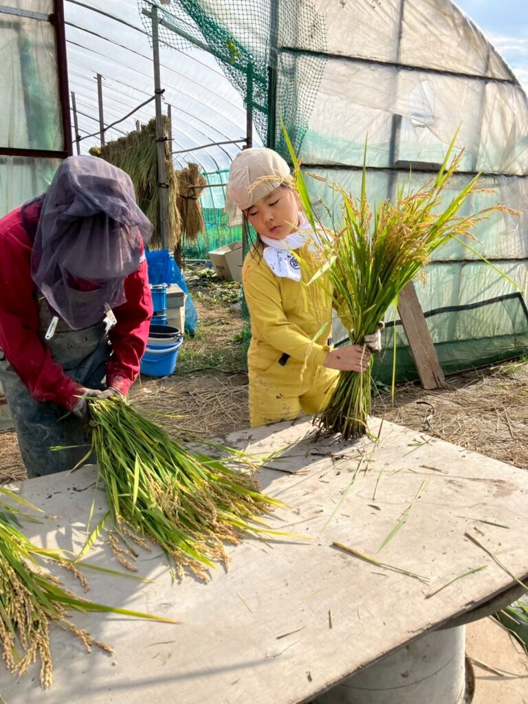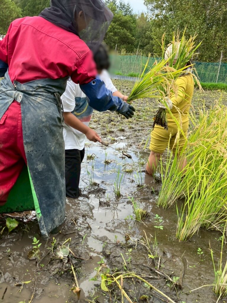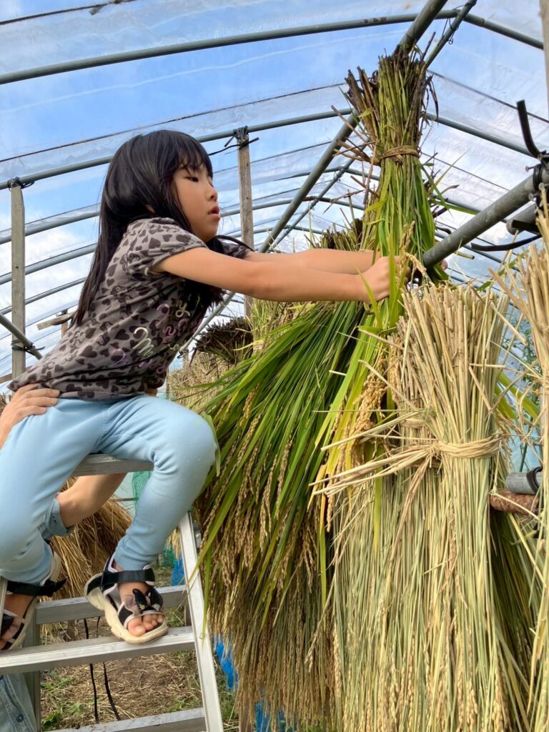 つくった稲束をハザ掛けにかける作業はちょっと高所だったけど、みんな果敢に挑戦!サポートする大人はちょっとドキドキだけどね笑
