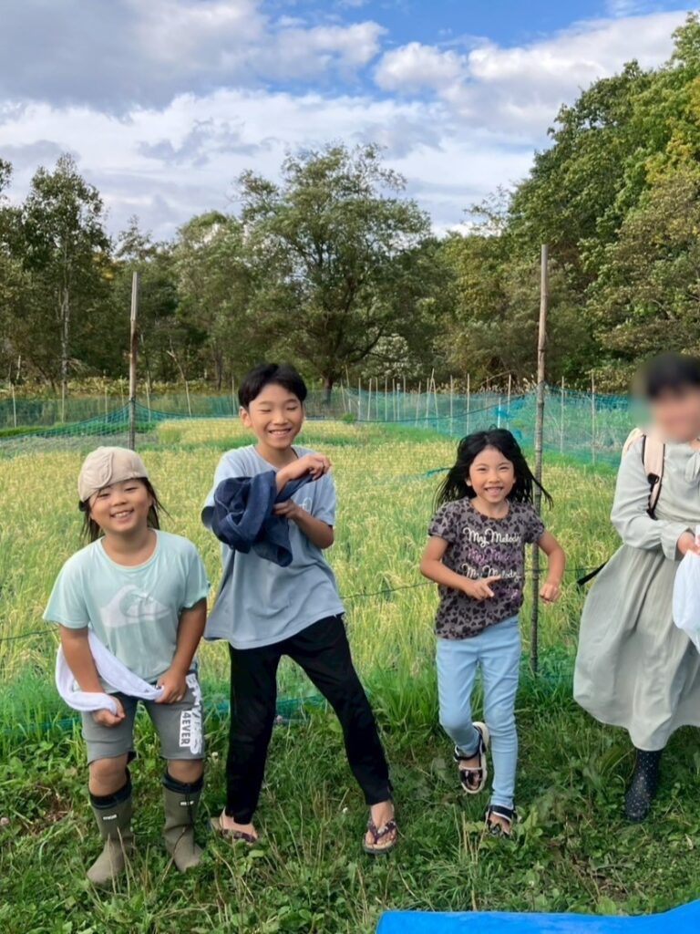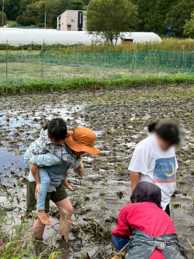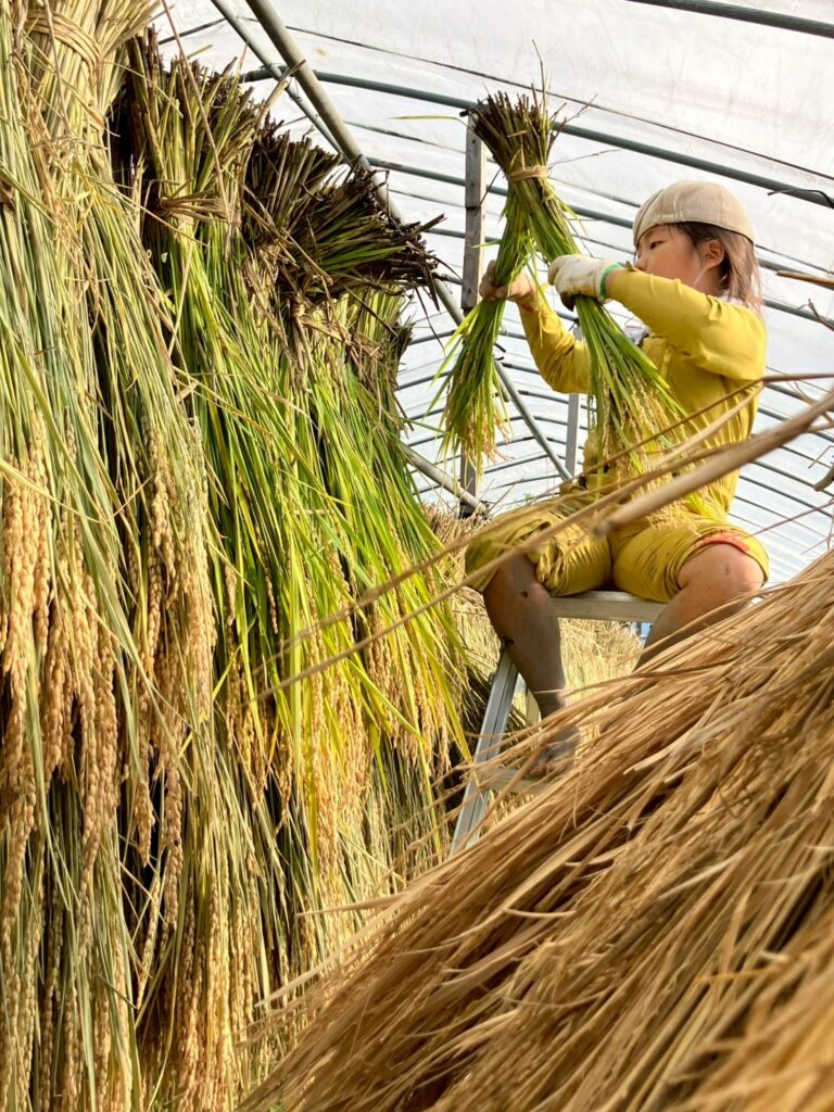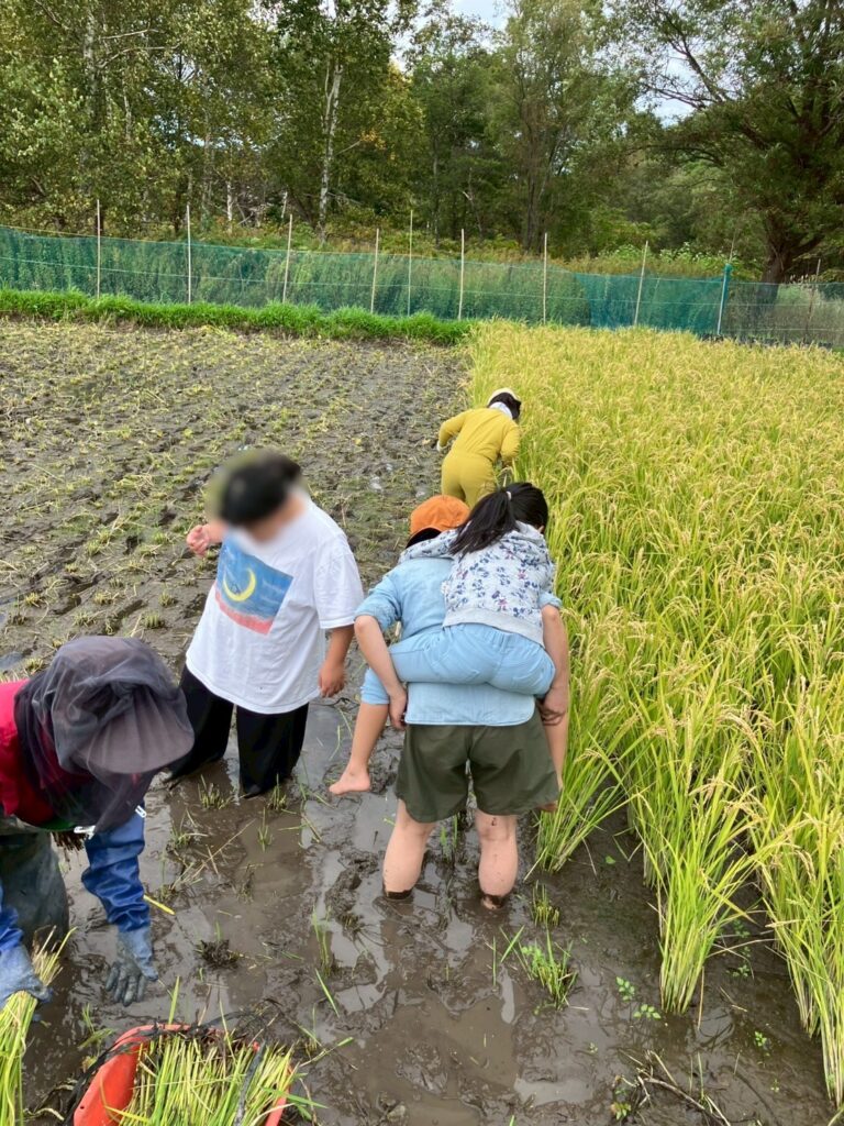 つくった稲束をハザ掛けにかける作業はちょっと高所だったけど、みんな果敢に挑戦!サポートする大人はちょっとドキドキだけどね笑