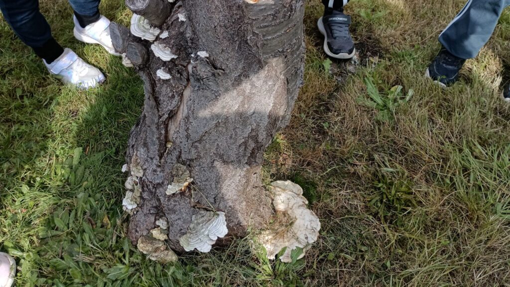 それから、フィールドビンゴを楽しんで、土から出ている根っこの端っこに立ってもらって、こちらでも木の大きさを体感してもらいました。サクラノキオッキイネ~😊