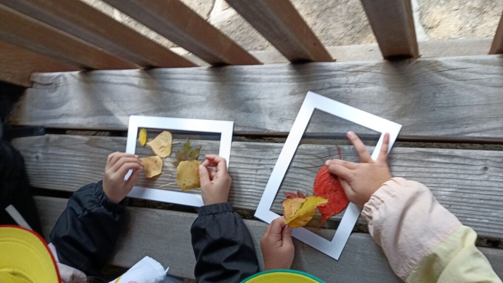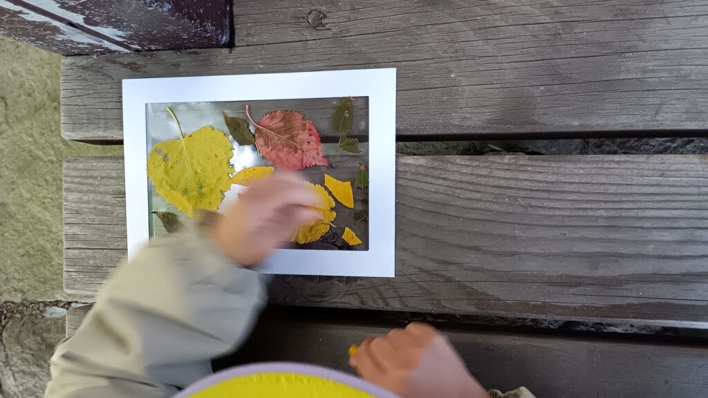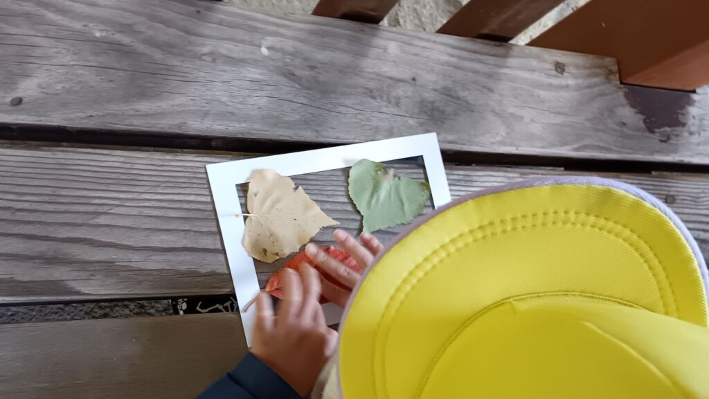 あっという間に最後のアクティビティ、うっちー作の白縁窓にみんなが気に入った葉っぱをペタペタ貼ってもらいました🍂🍃🍁