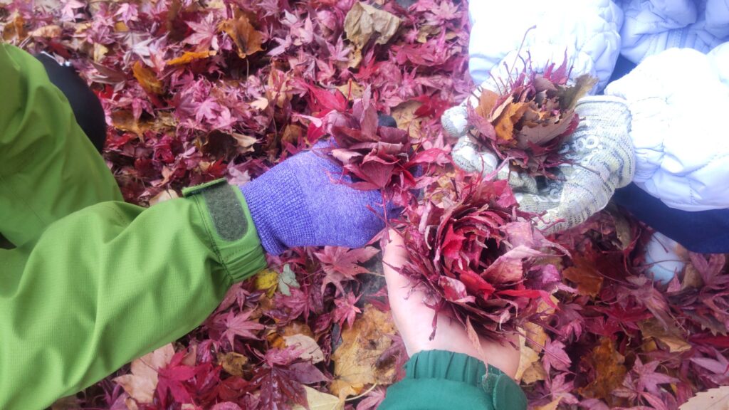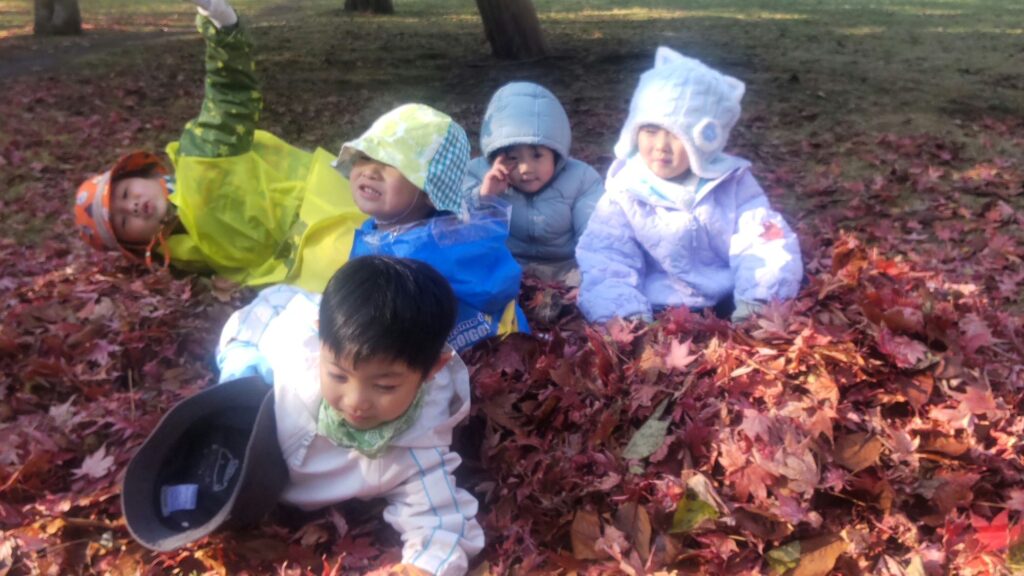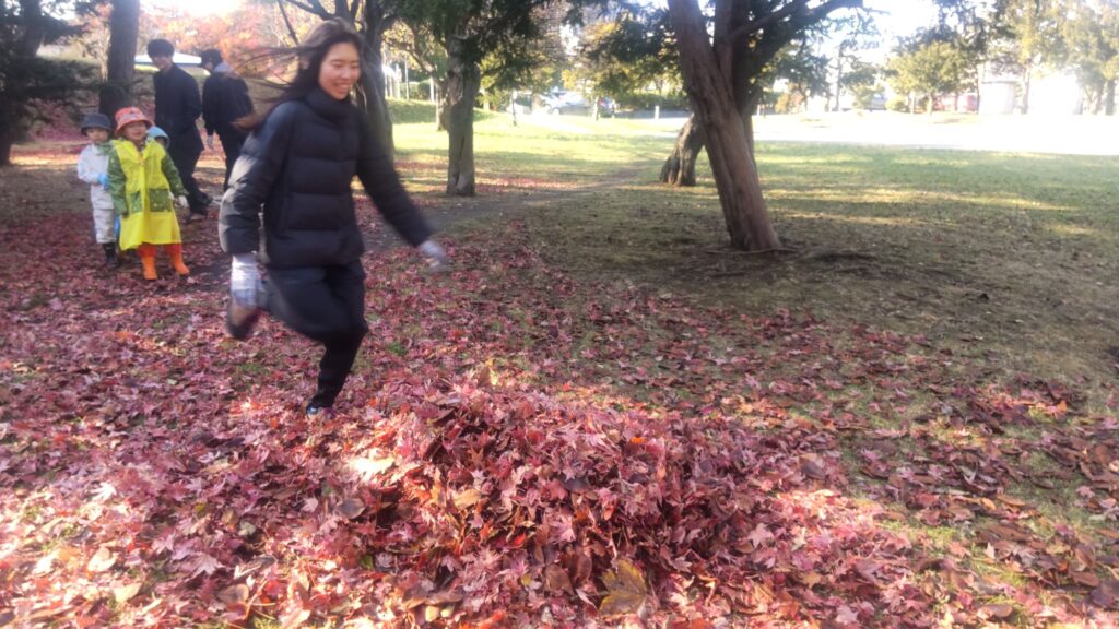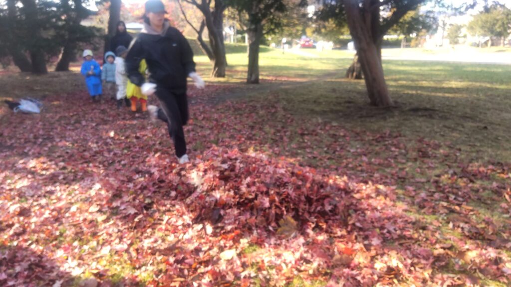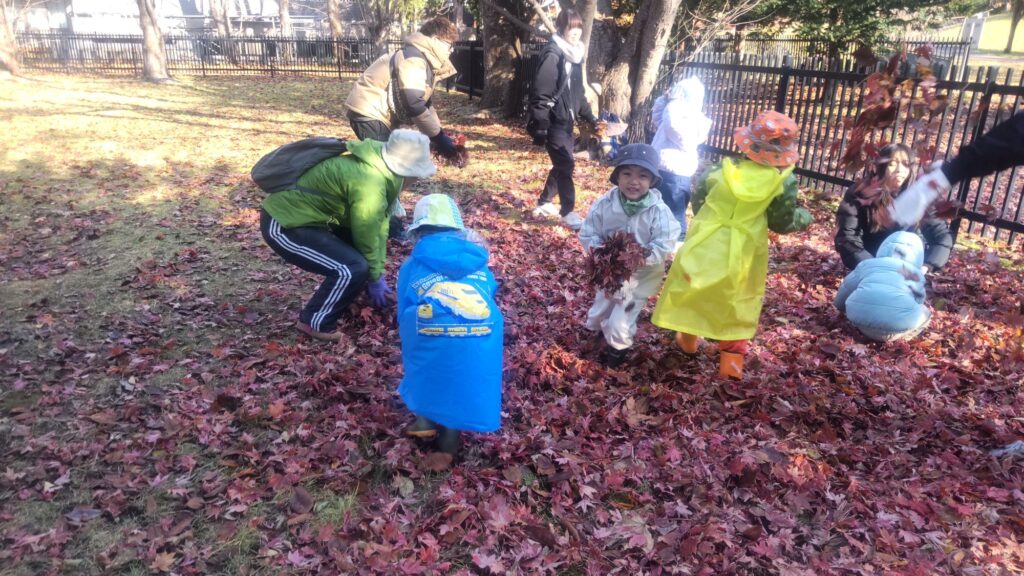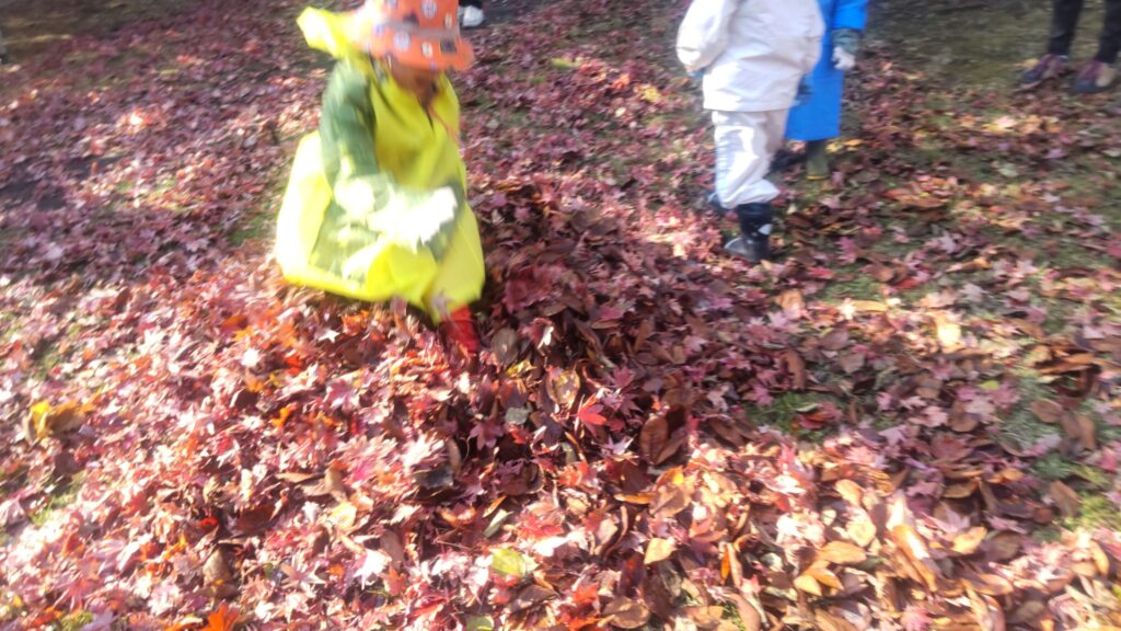 最後は落ち葉をかけ合いましたよ~🍂🍁🍃