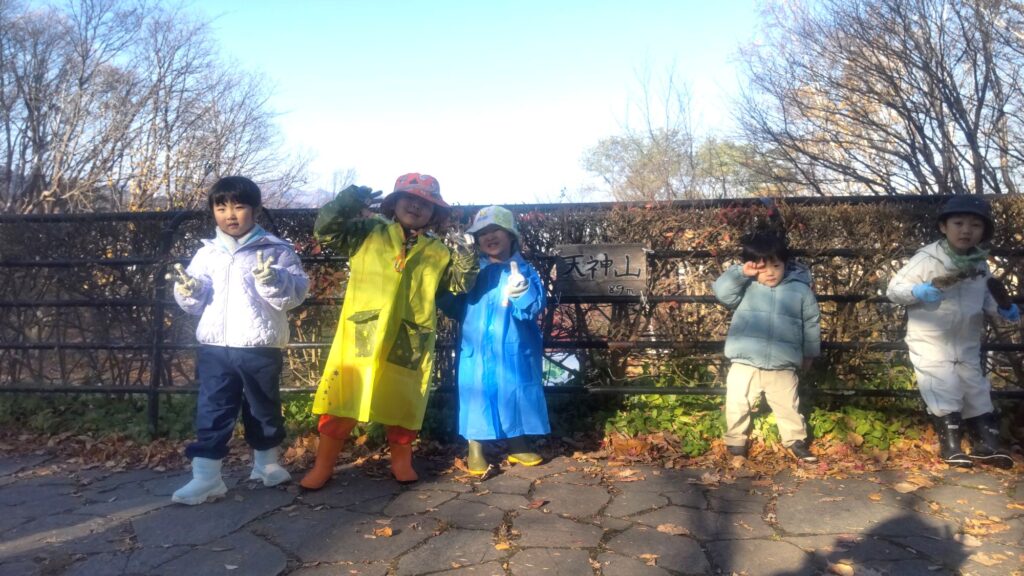 ロープ電車で落ち葉をカサカサしながらみんなで下山して、落ち葉の小山づくりをしました🍁✨