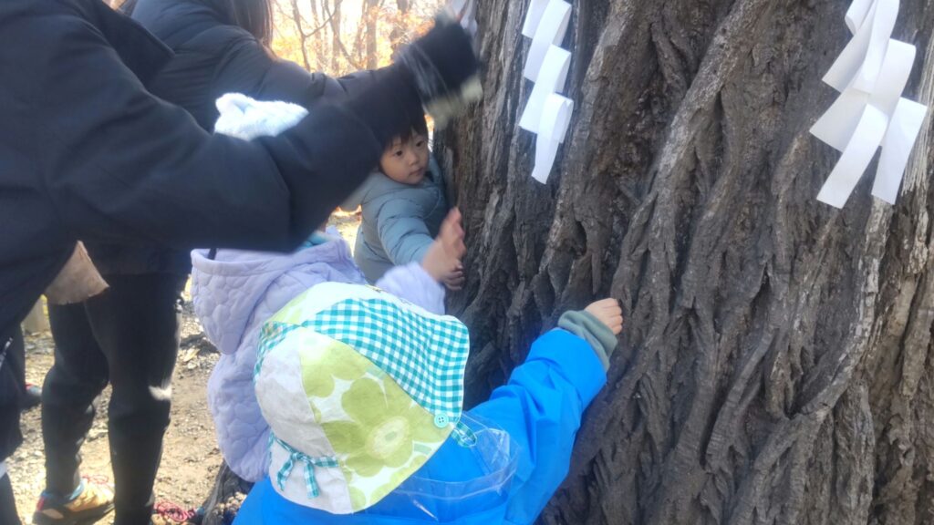 隣接する相馬神社の神の木をみて、囲って、触って、、、大きいシバクリの木でした🌳今日はエゾリスはいませんでした。。。