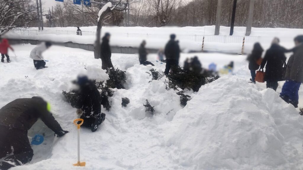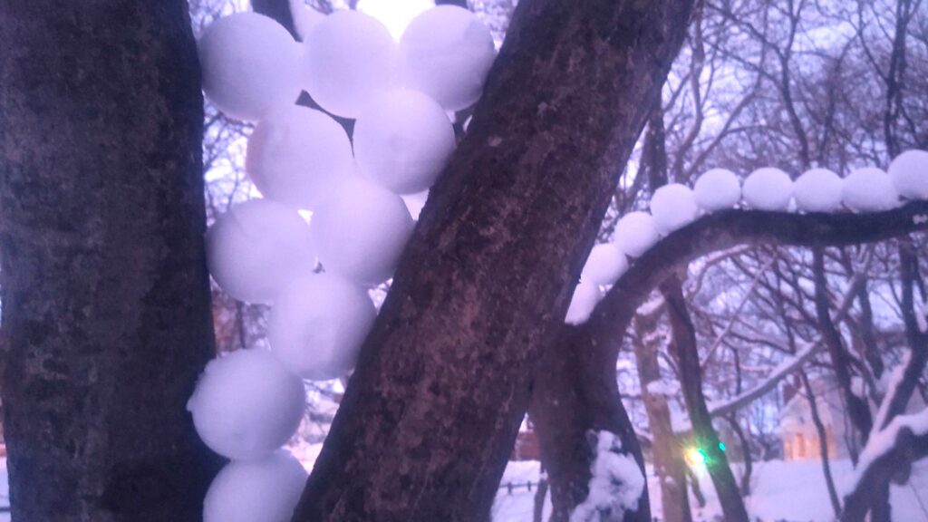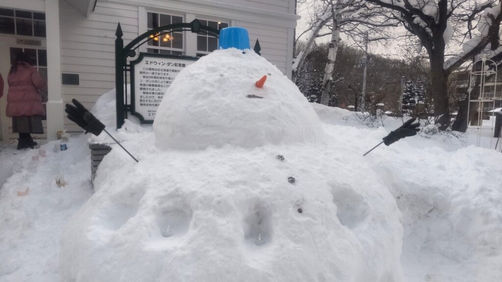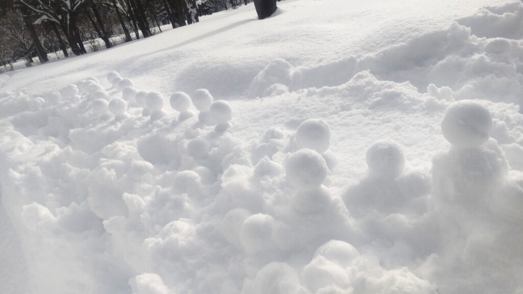 その中で、始めから来ていた外国人の親子が雪遊びに慣れていないようすだったので、一緒に小さい雪だるまを作りましたよ⛄