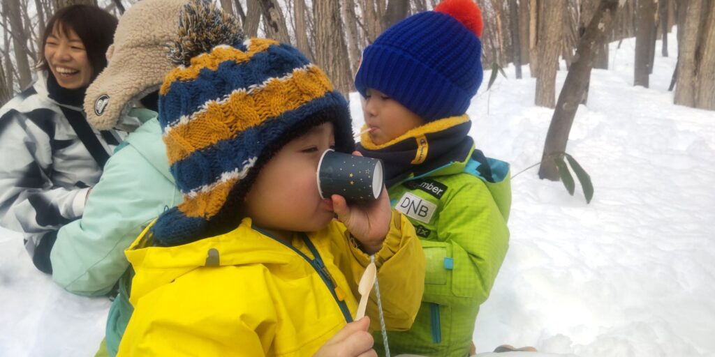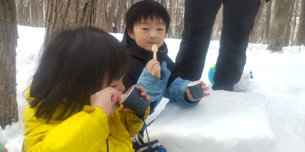 森のようちえん「いつもり」2月は、桜山でアイスクリームづくりとしゃぼん玉あそびをしました♪✨
