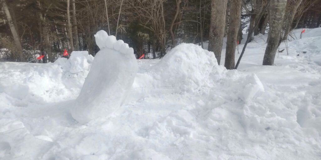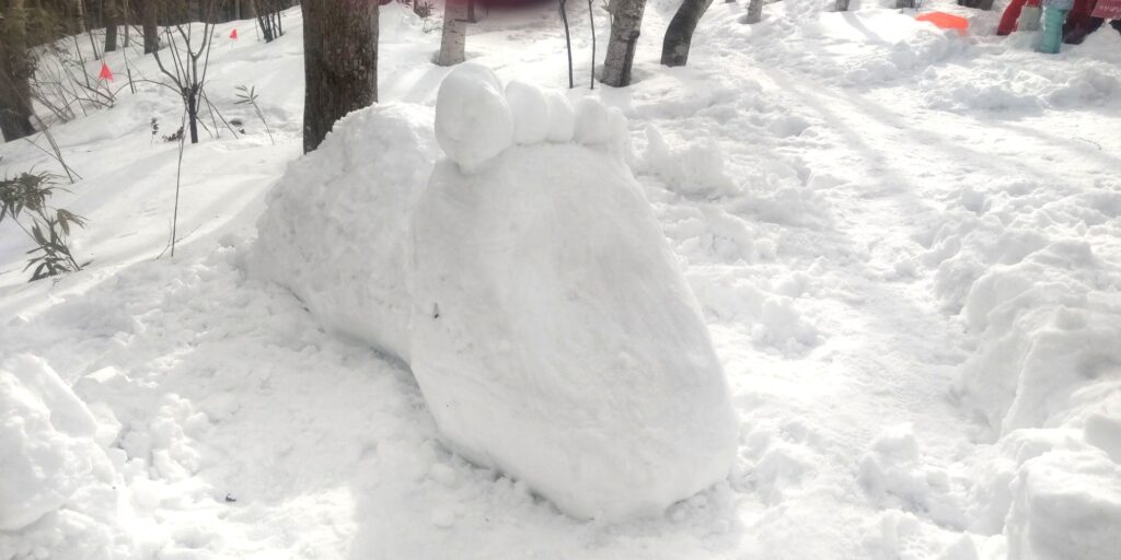 積みあがった雪をみてとっさに「立体」を思いつき、今年は平面の足跡ではなく足そのものを作ってみることにしました!