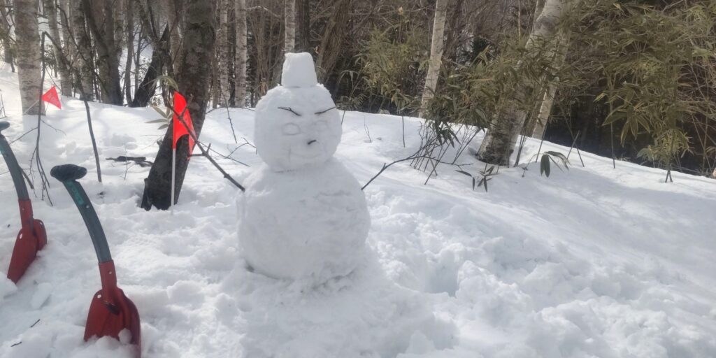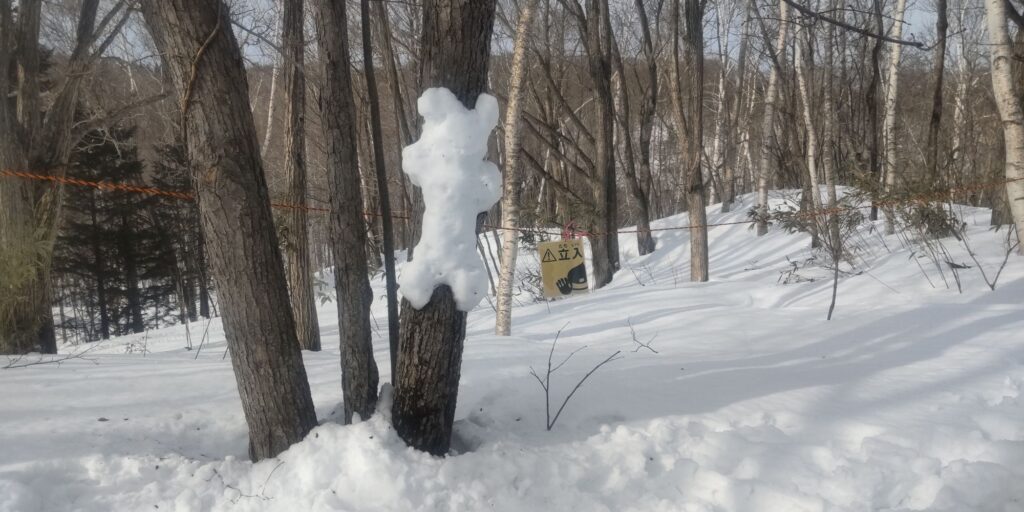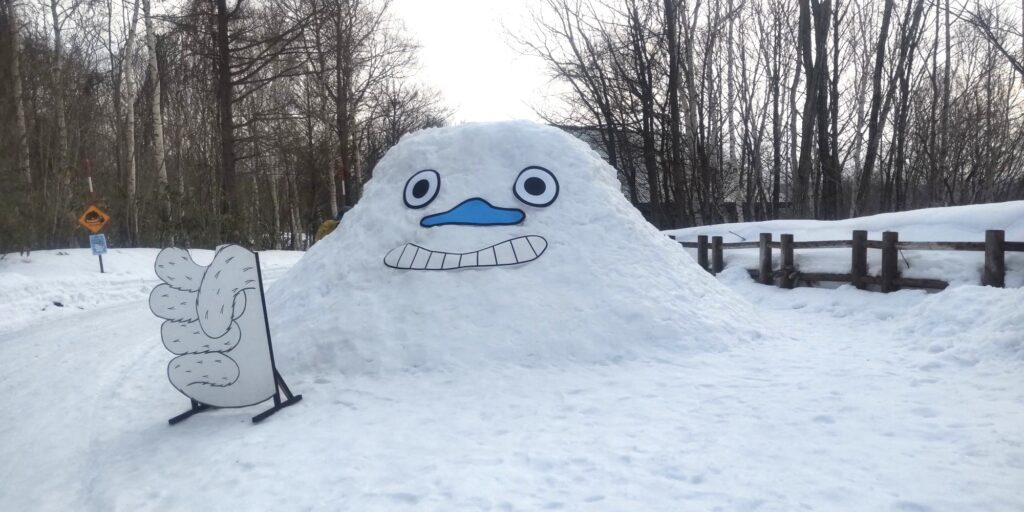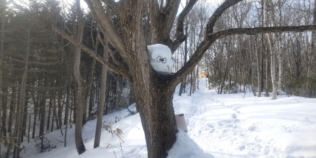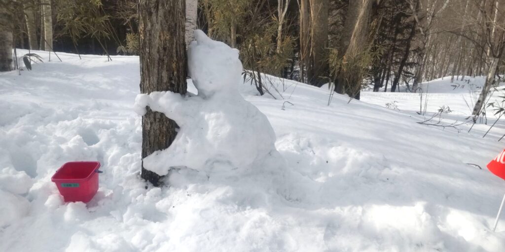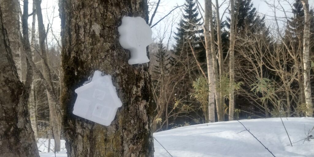 毎年ノモリの足跡👣をいろんな形で表現していますが、今年はどうしようかな、やらないかな、と思っていたら、イマイさんが「今年はやらないんですか?」とニコニコしてやって来たので、やっぱりやるか!と思って、雪を触り始めました❄