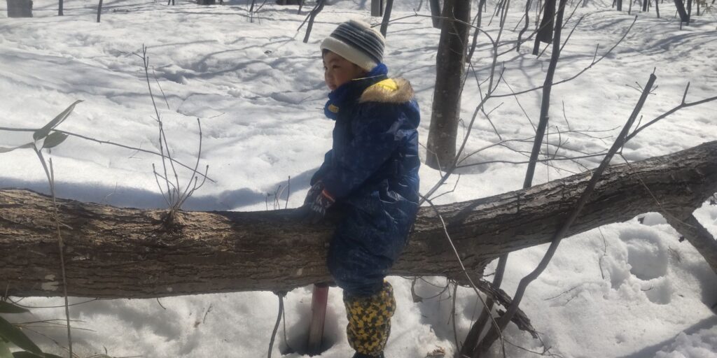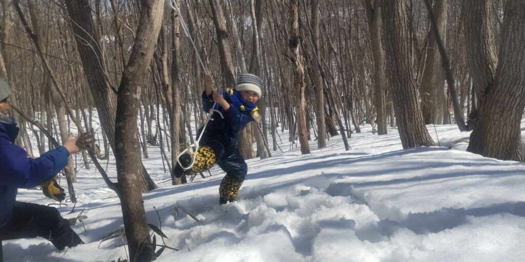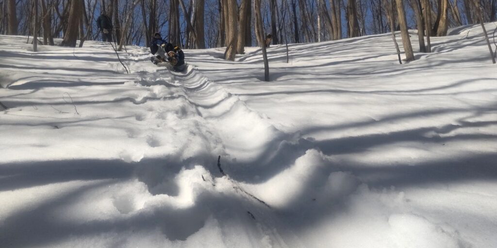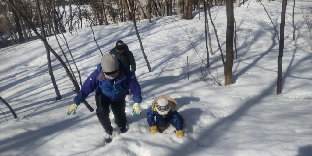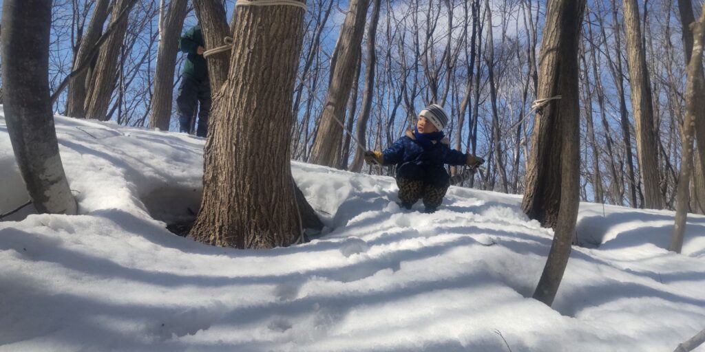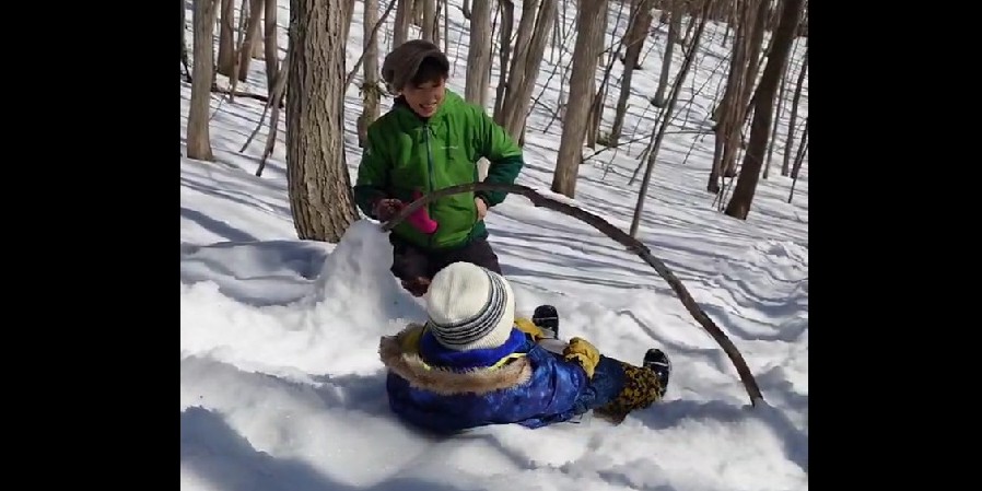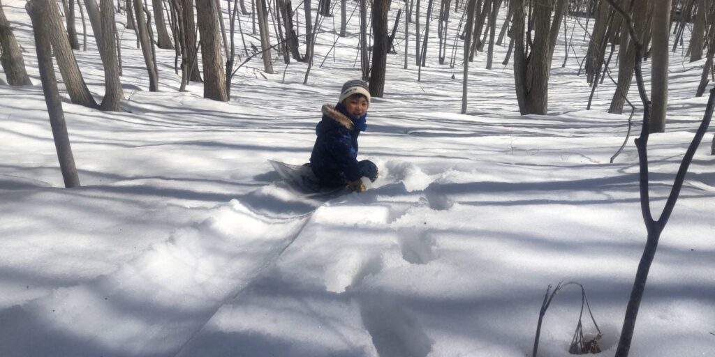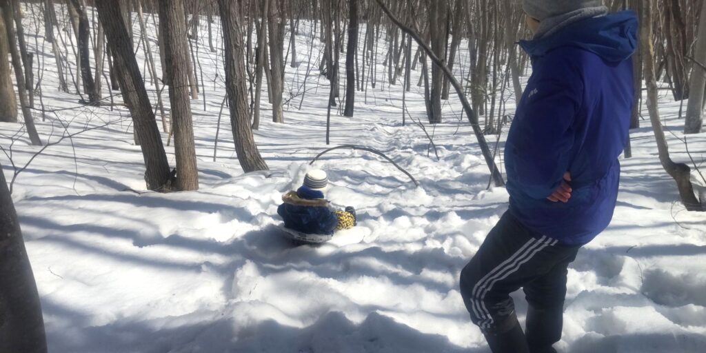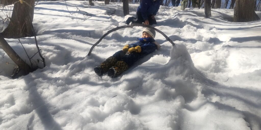 森でハルくんのやりたいことは尻滑り!とのことで、場所を選定してたくさん滑りましたよ!