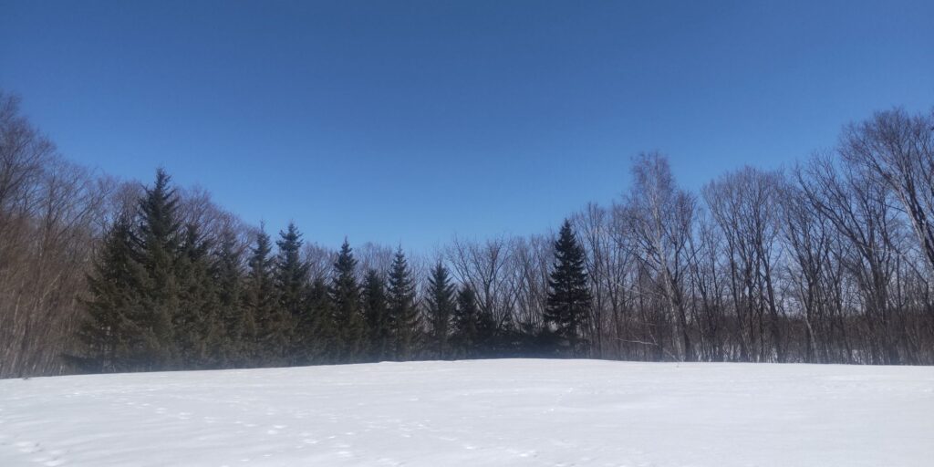 キタキツネの足跡を辿りながら、ツボ足がちょっと大変だったけれど、尾根で卒園式🌸