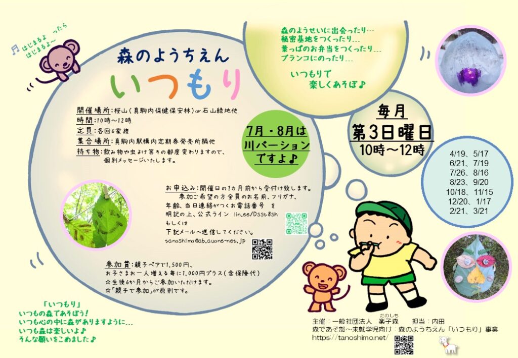 2021年 7/16(金)10時~12時 森のようちえん「いつもり」スタート♪
